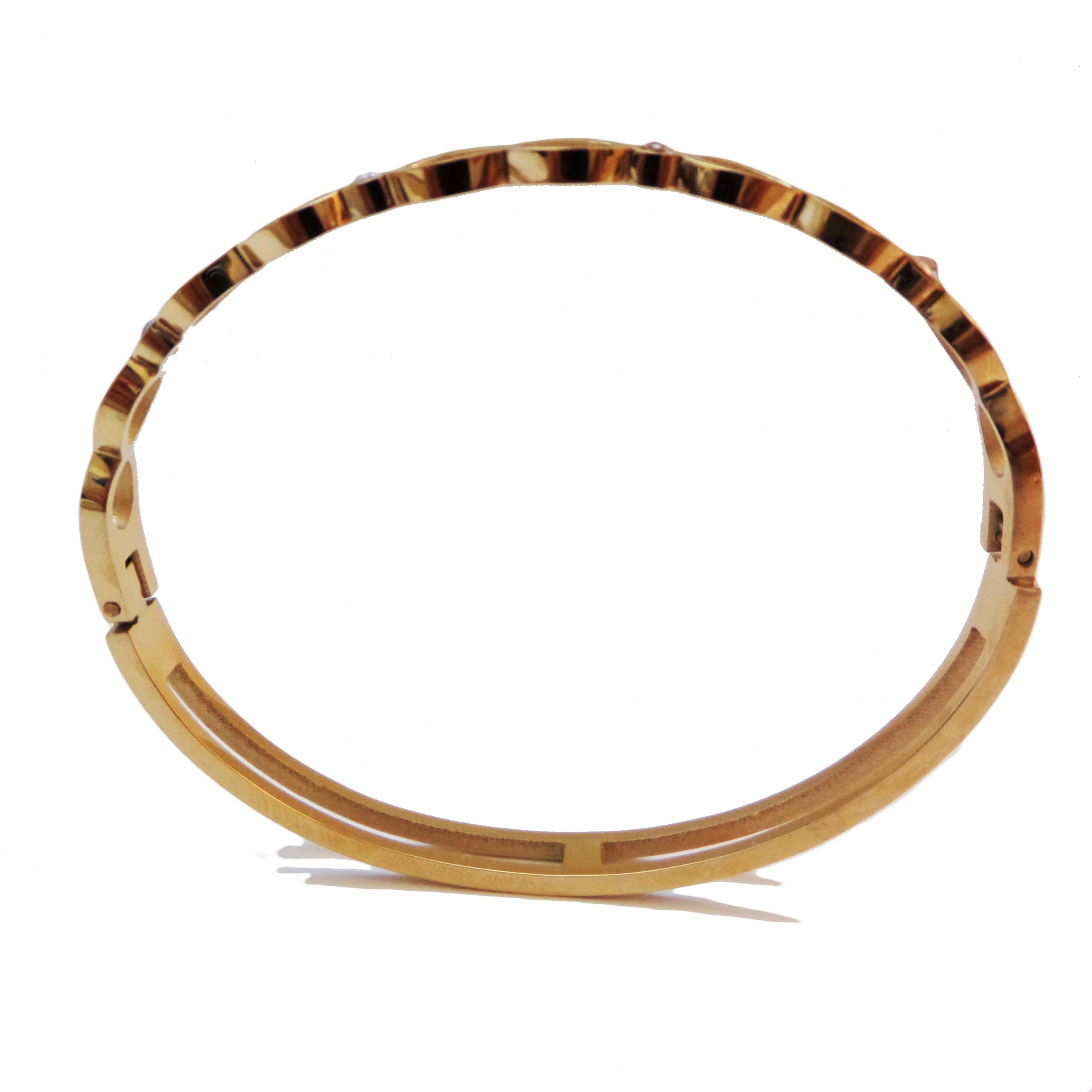 Stainless Steel Bangle Infinity golden color open with rhinestone for woman.